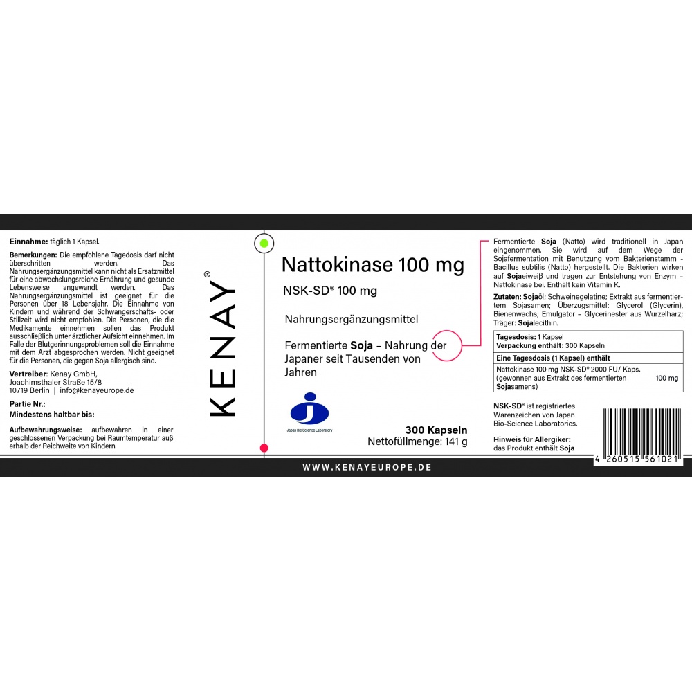 Nattokinase 2000 FU (from fermented soybean extract) |