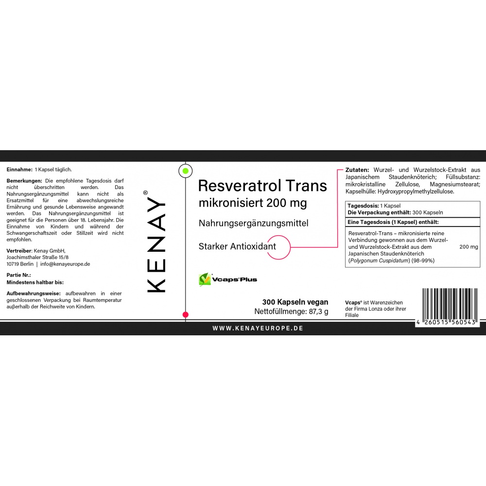 Resveratrol trans micronized (from Japanese knotweed) (Polygonum cuspidatum) extract (roots and rhizome) (98-99%) |
