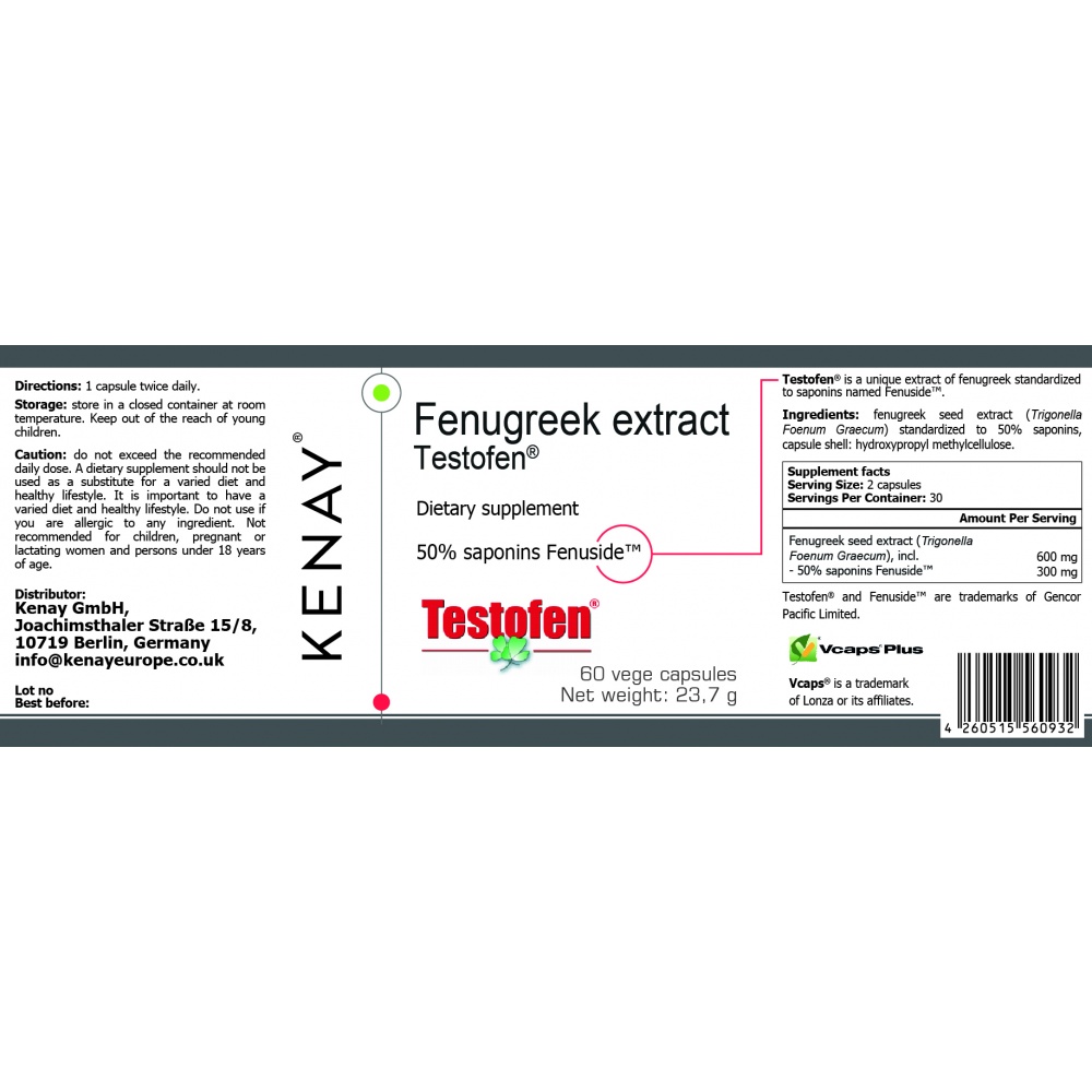 Ingredients: fenugreek seeds extract, capsule shell: hydroxypropyl methylcellulose