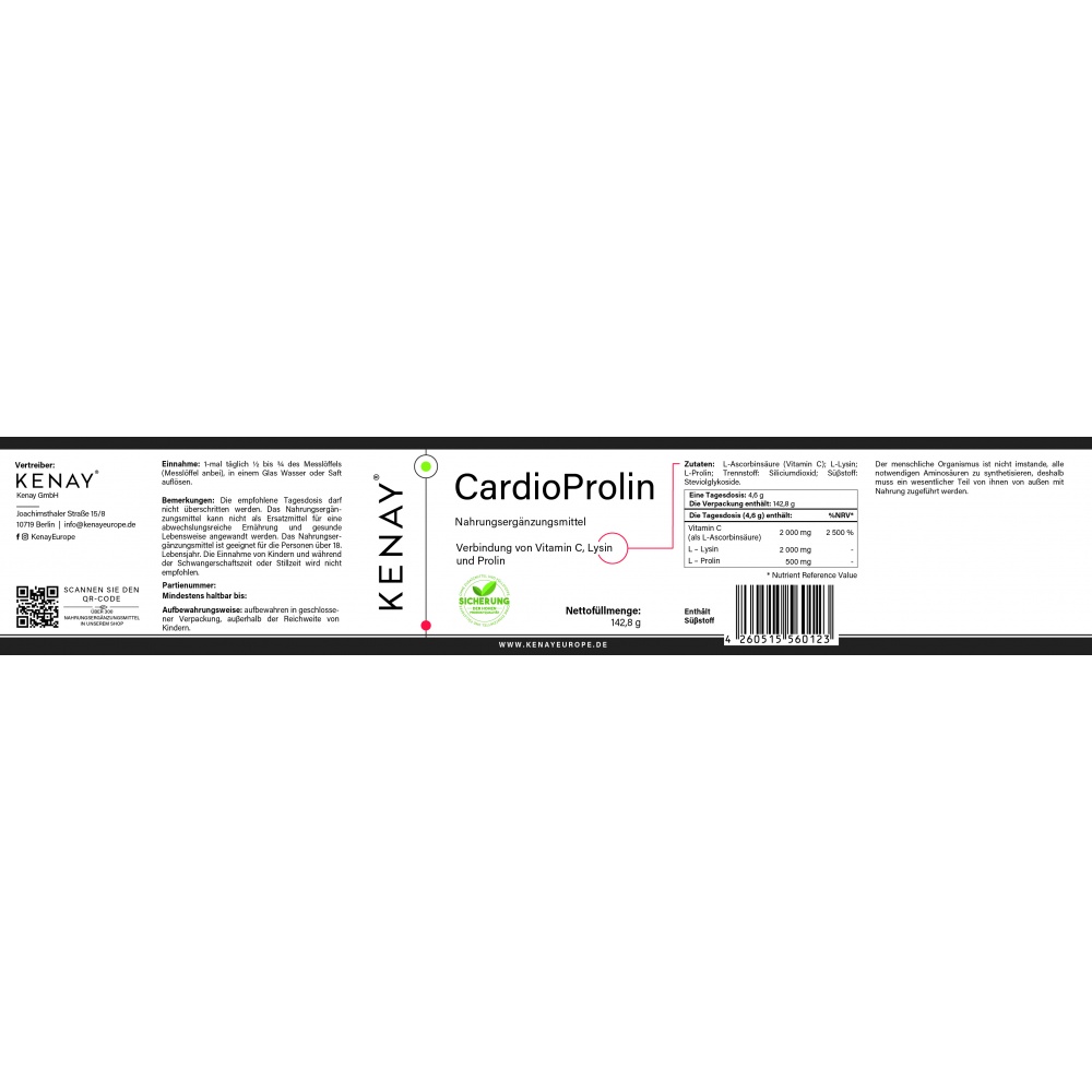 Ingredients: L-ascorbic acid, L-lysine, L-proline, sweetener: stevia